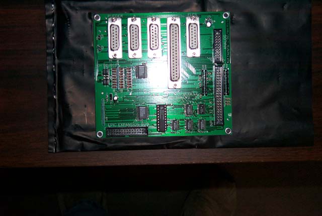 The last connector of interest on this board is the big 37 pin connector that is positioned to the right of the 3 DB15 connectors. This is how the Expansion Module connects to the EPIC. It should be noted that a special Expansion Module and "Y" cable can be ordered to increase the input capability of the EPIC. The option will allow the EPIC to access both Expansion Modules giving you 608 inputs. It does not (as far as I know) allow access to an additional 16 analogs or the extended EPIC Bus on the second Expansion Module.