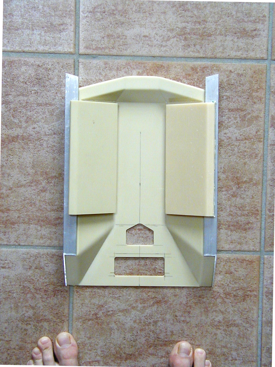 Guage prototype made of plastic tubing, the two inche coupling was cut in half just above the inner ring |