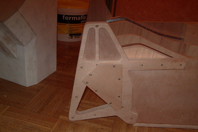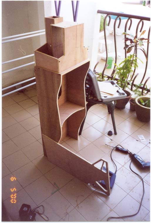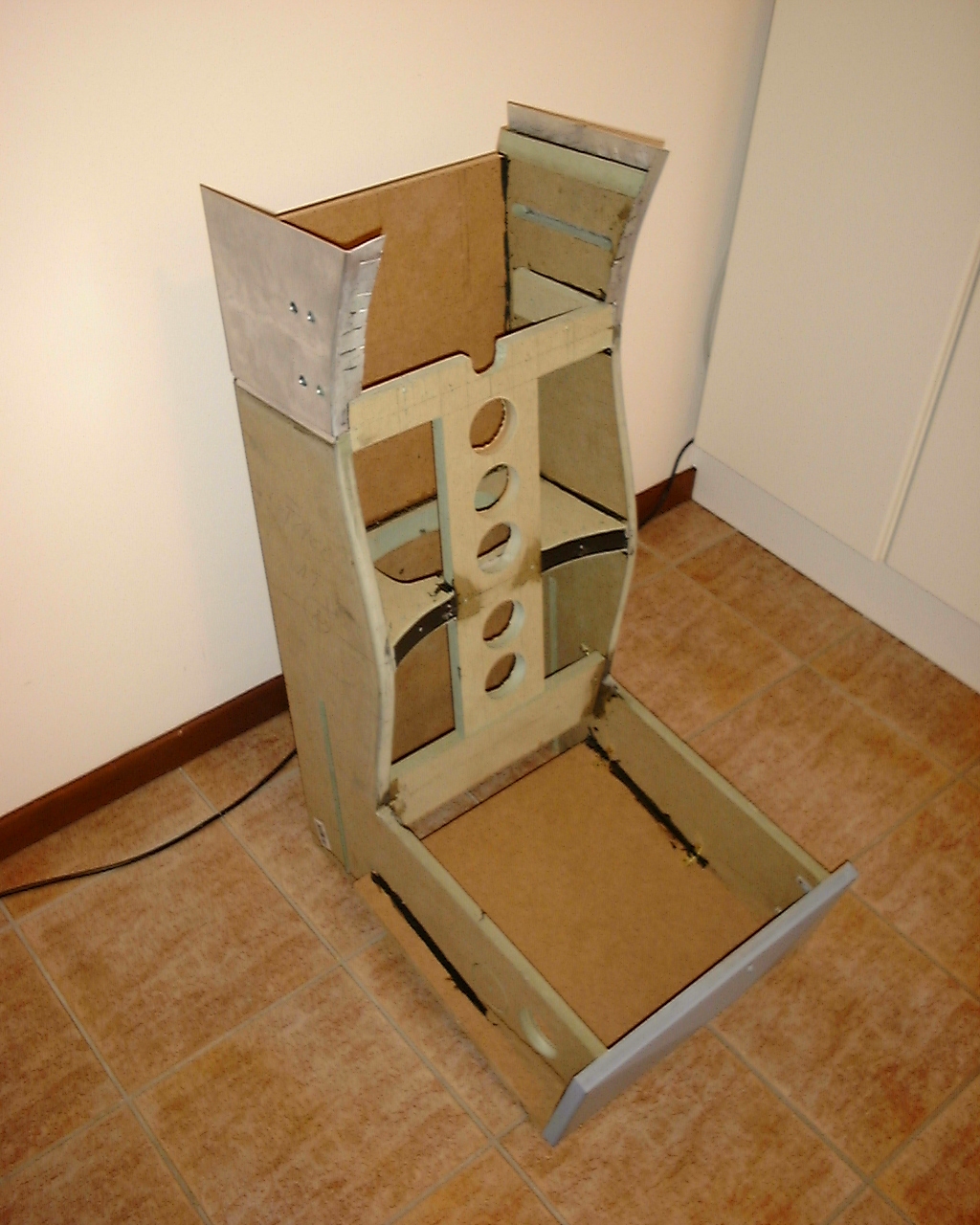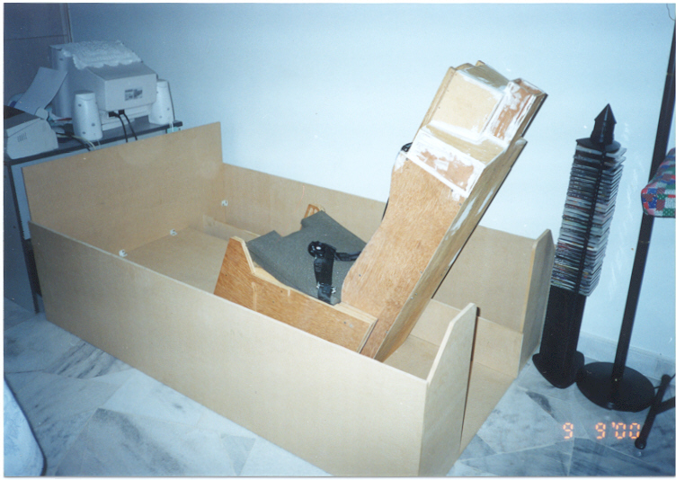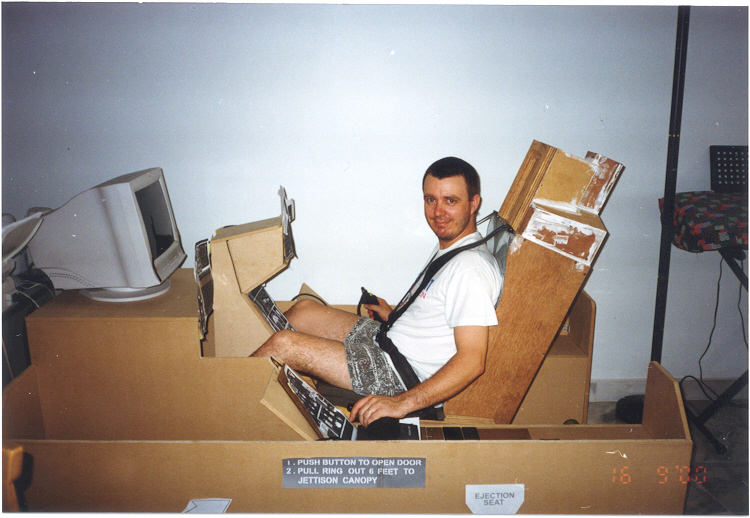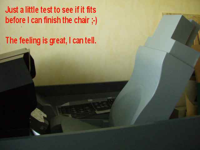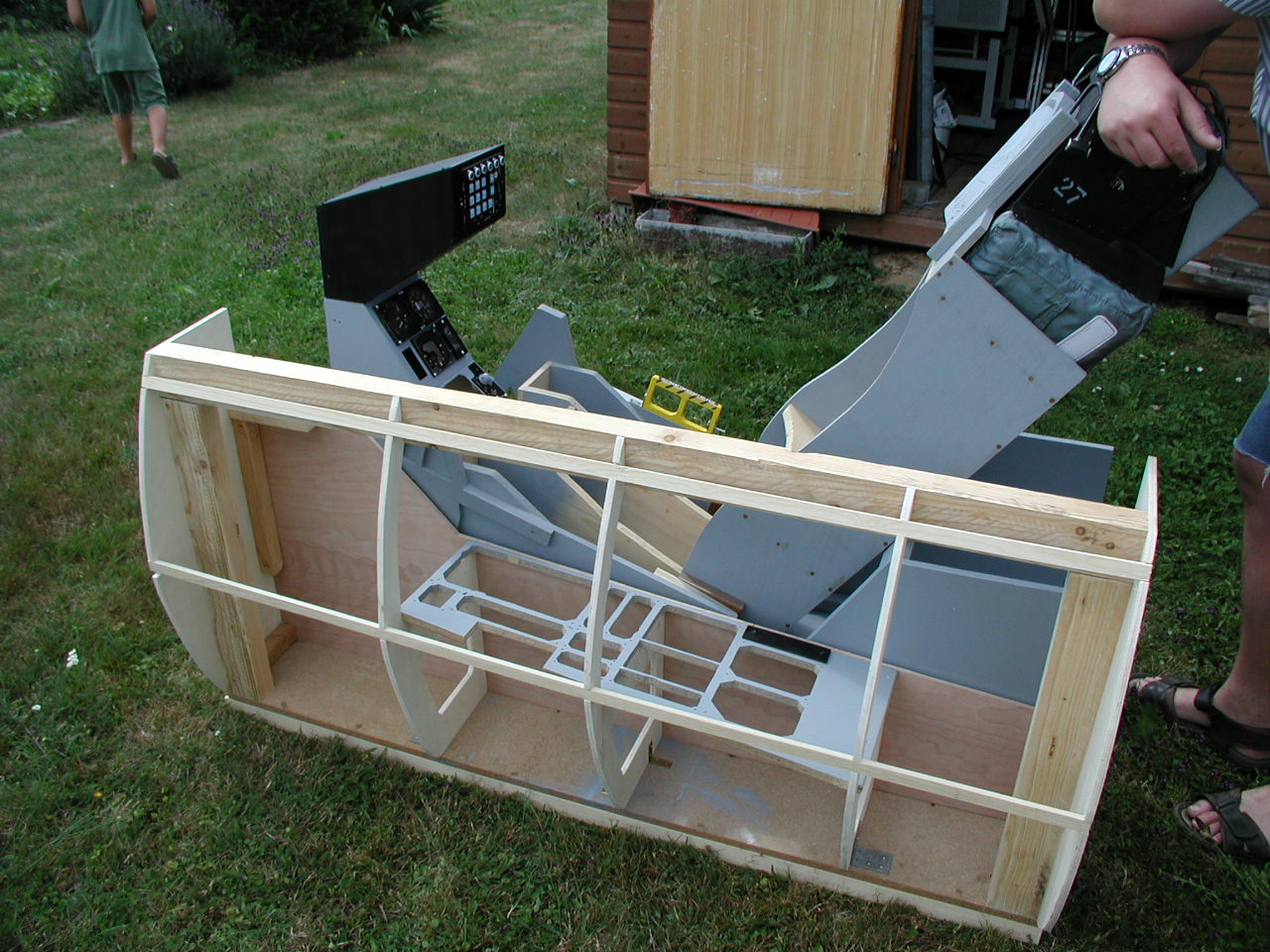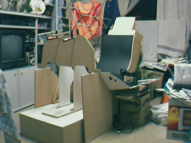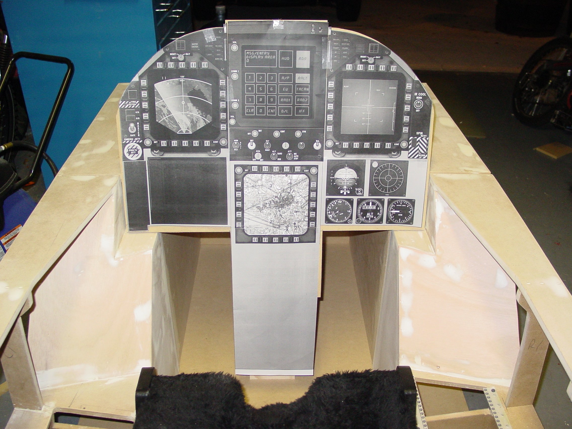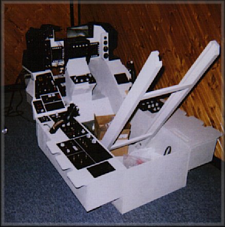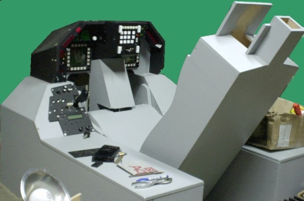 Albert Yung's excellent fold-up F-16 cockpit. This is the "folded" position. |