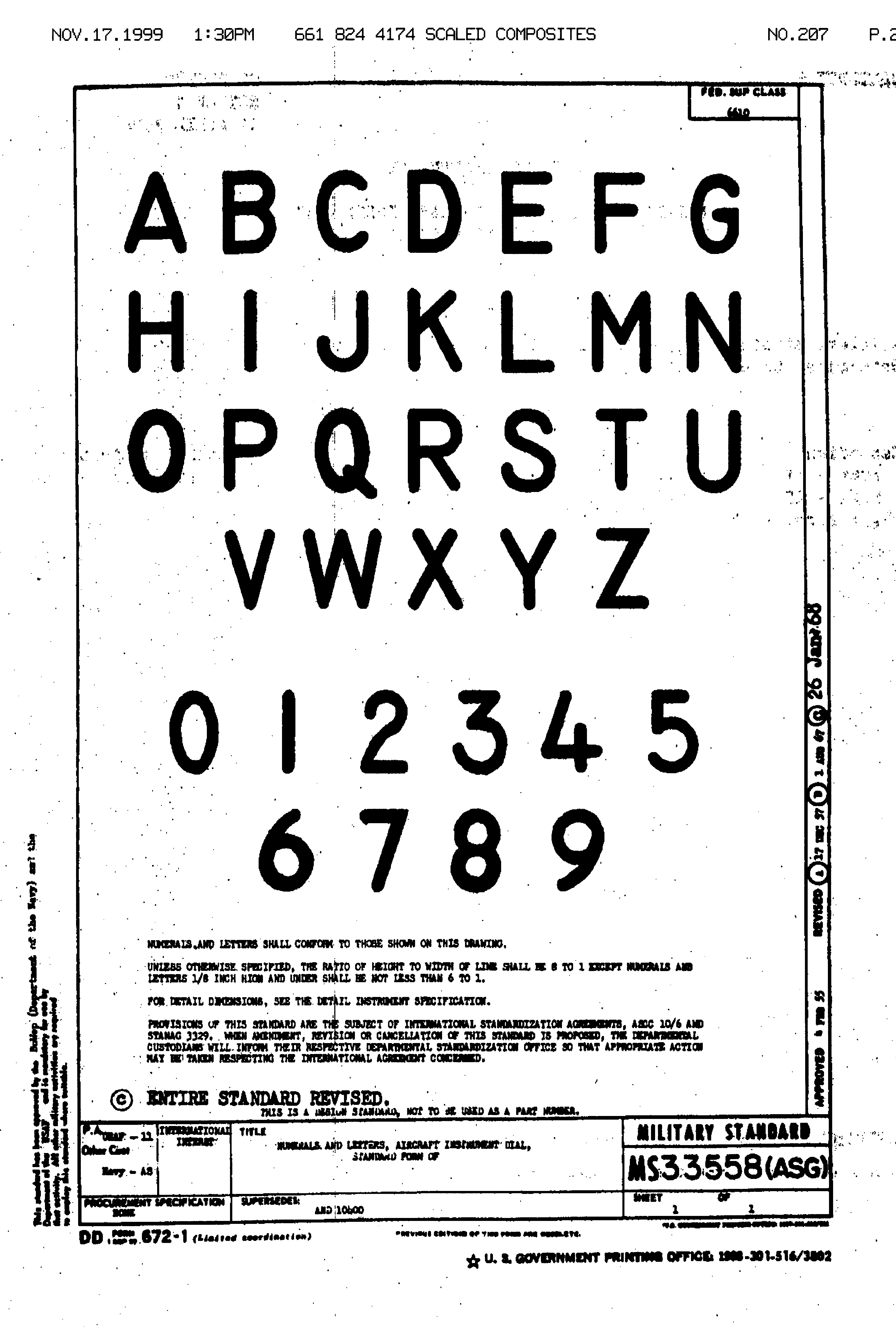 Proof sheet for the milspec font used in military & civilian lightplate lettering. The MILSPEC # is MS33558 |