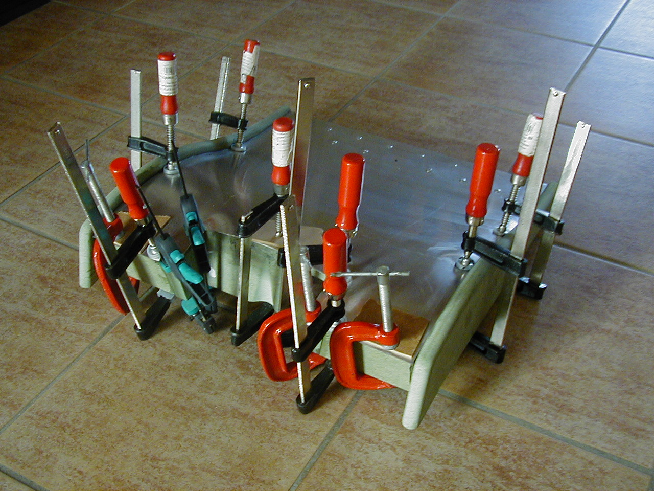 Simple adjustable rudders, seat rails from a bucket seat. |