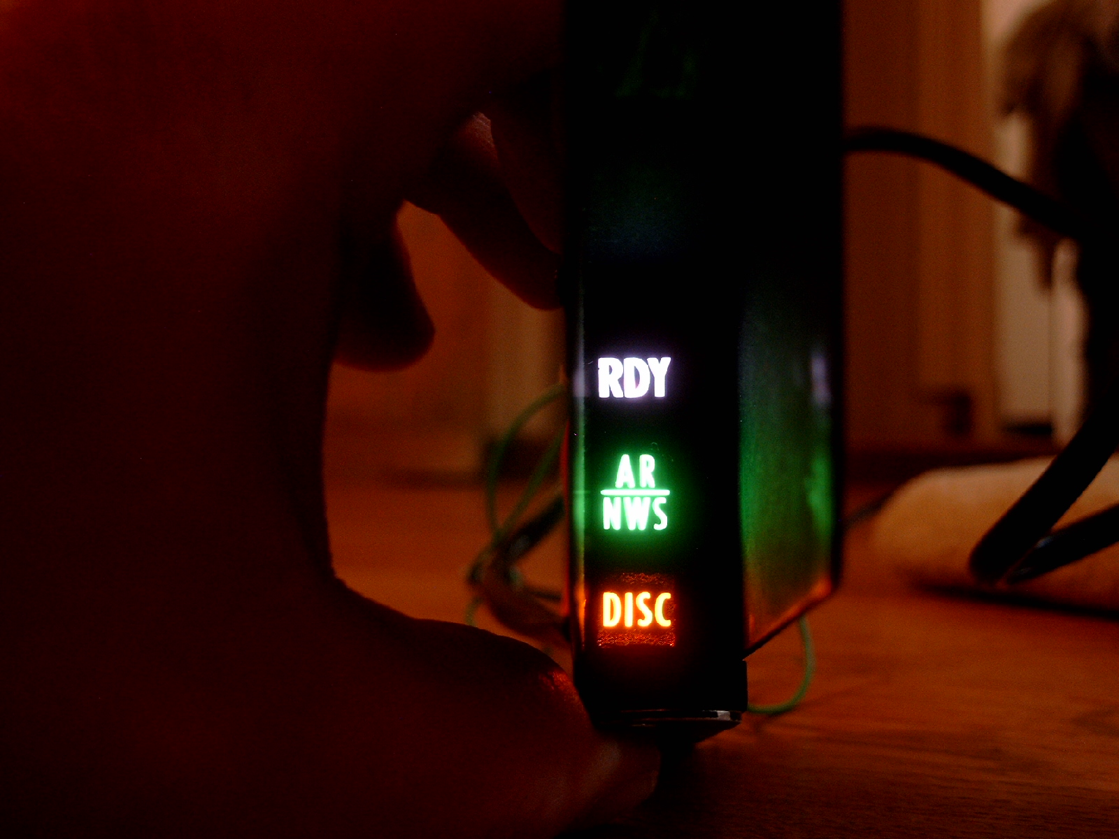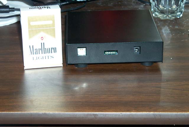 USB EPIC - Rear Face - Shows USB connector, activity/health lights and power connector. Cigarette pack for scale. |